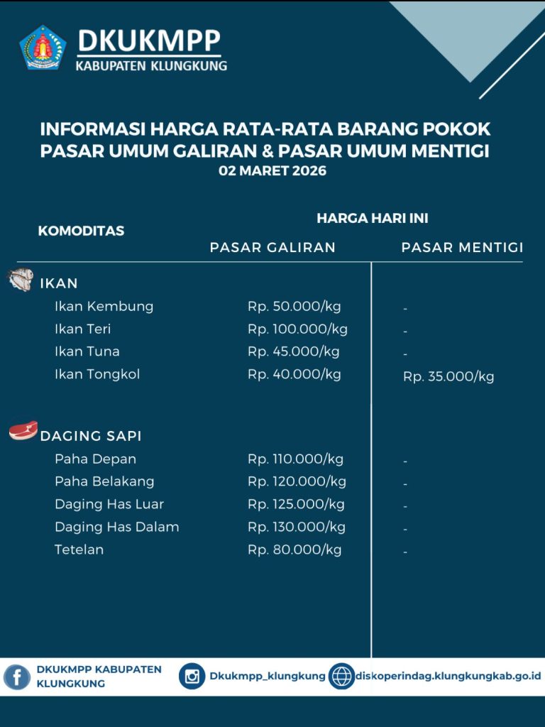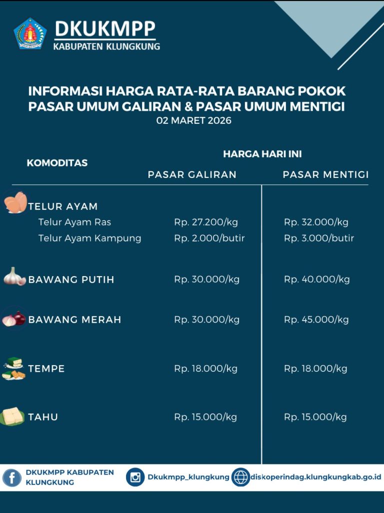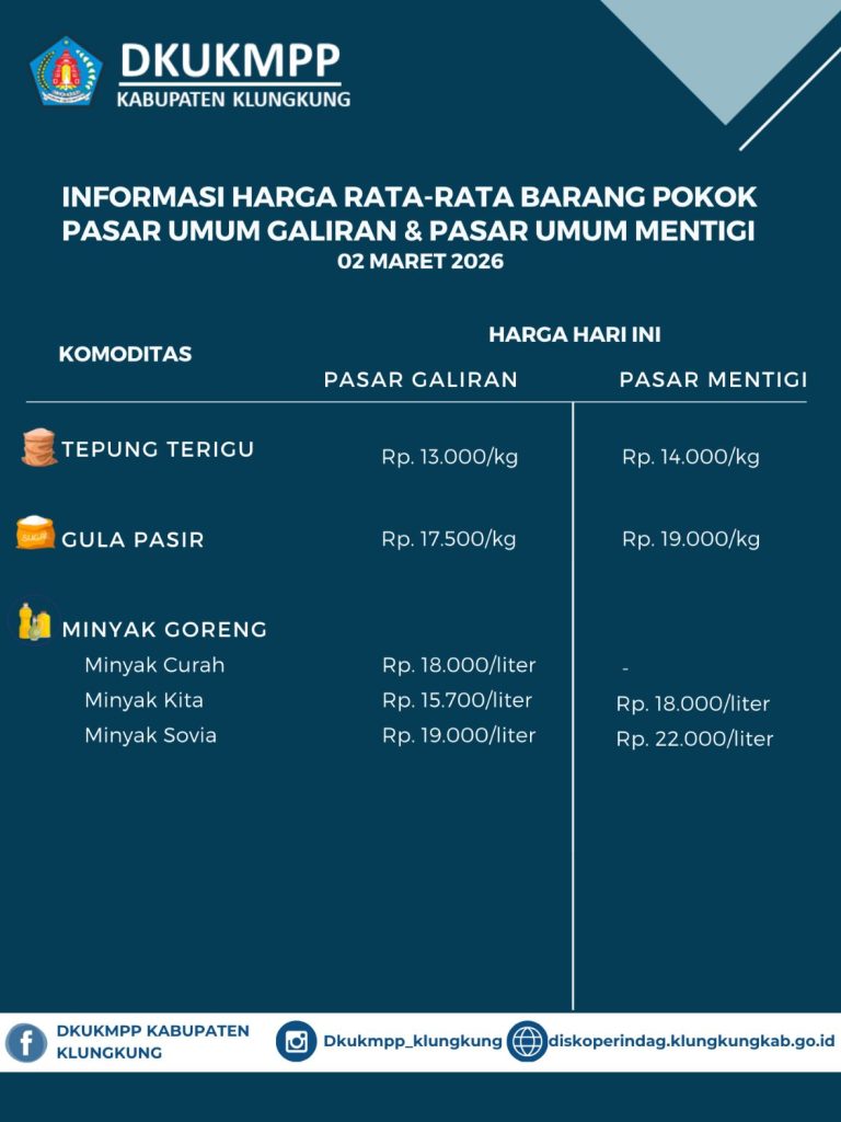 Berikut update Informasi Harga Rata-Rata Barang Pokok Pasar Umum Galiran dan Pasar Umum Mentigi 02 Maret 2026