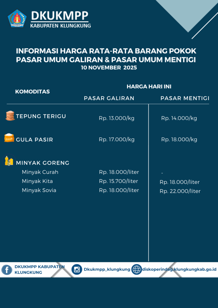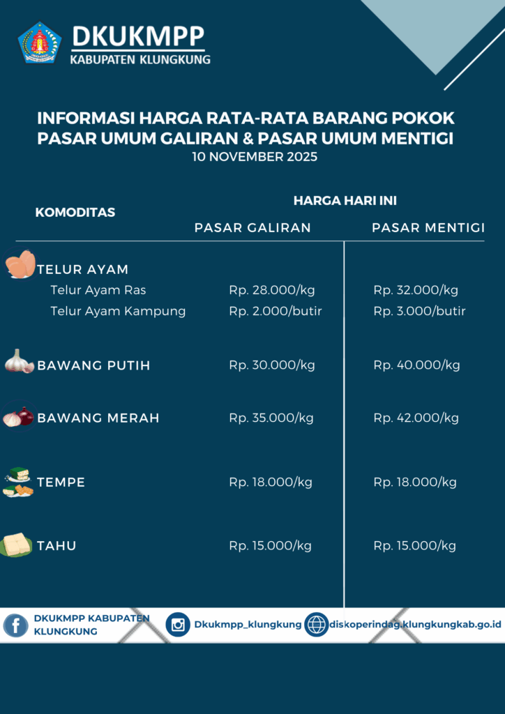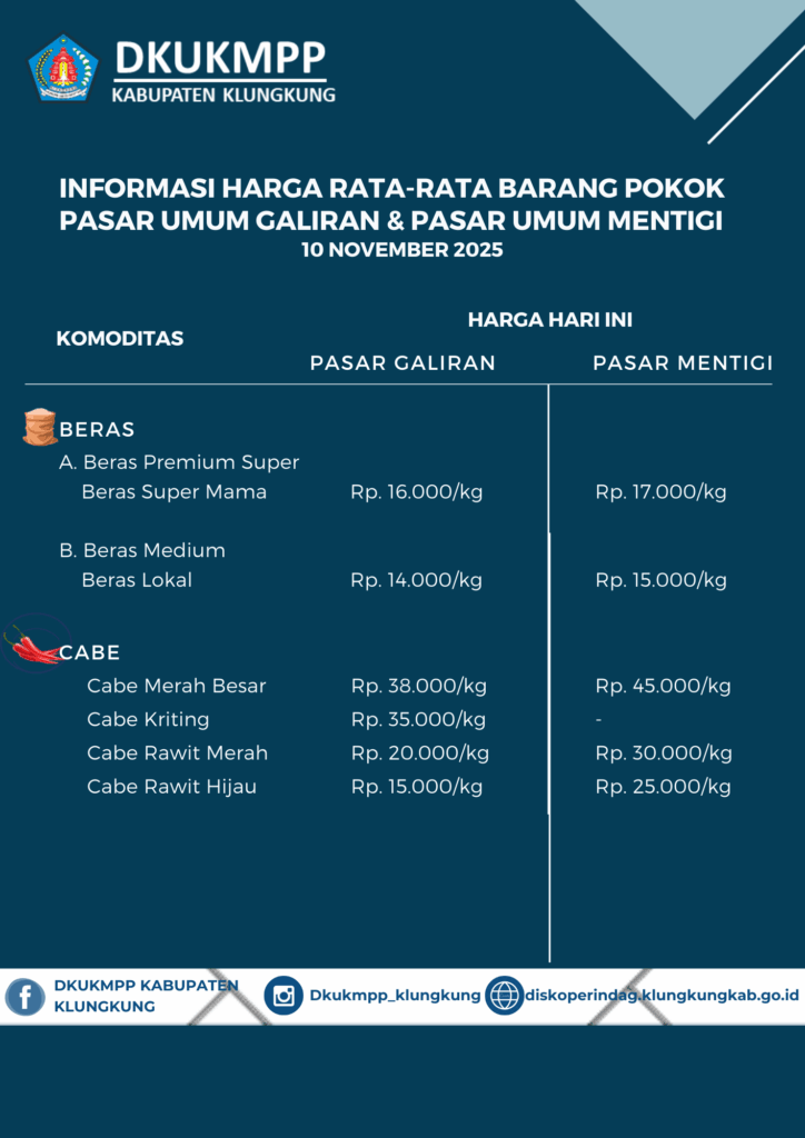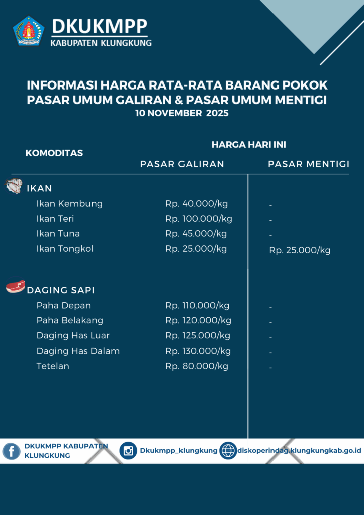 Informasi Harga Rata-Rata Barang Pokok Pasar Umum Galiran dan Pasar Umum Mentigi 10 November 2025