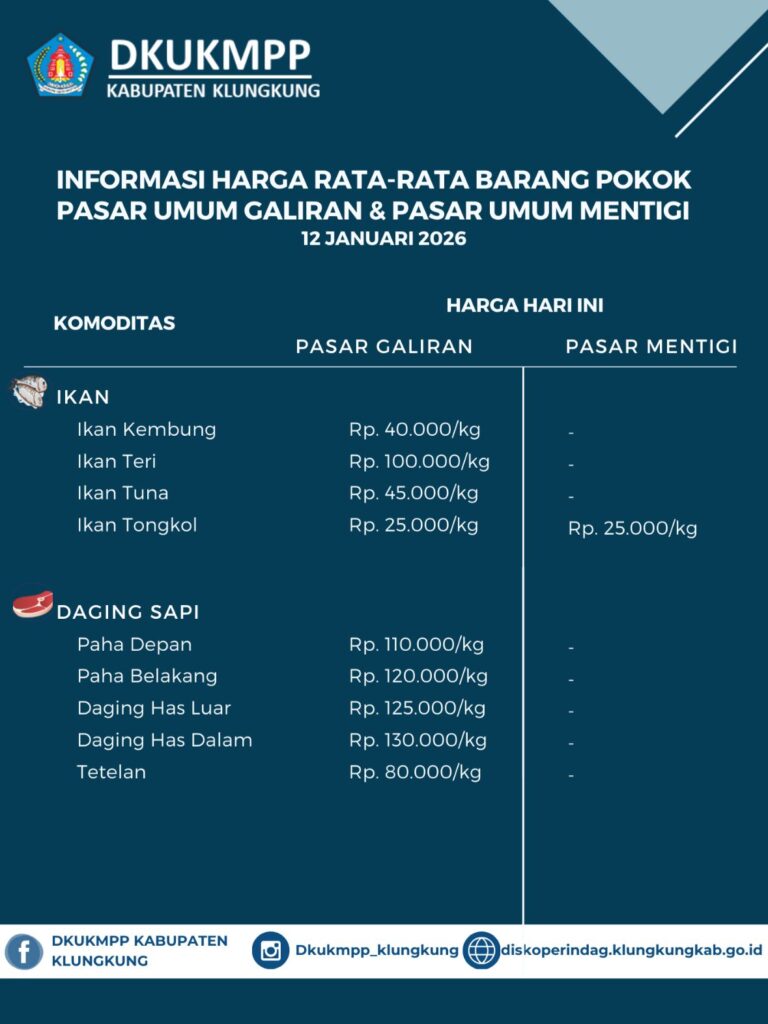 Informasi Harga Rata-Rata Barang Pokok Pasar Umum Galiran dan Pasar Umum Mentigi 12 Januari 2026